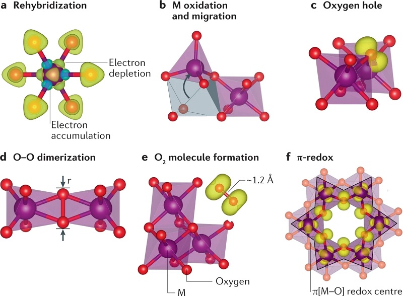 (d)阴离子氧化还原可能伴随结构扭曲,例如O-O二聚体的形成;