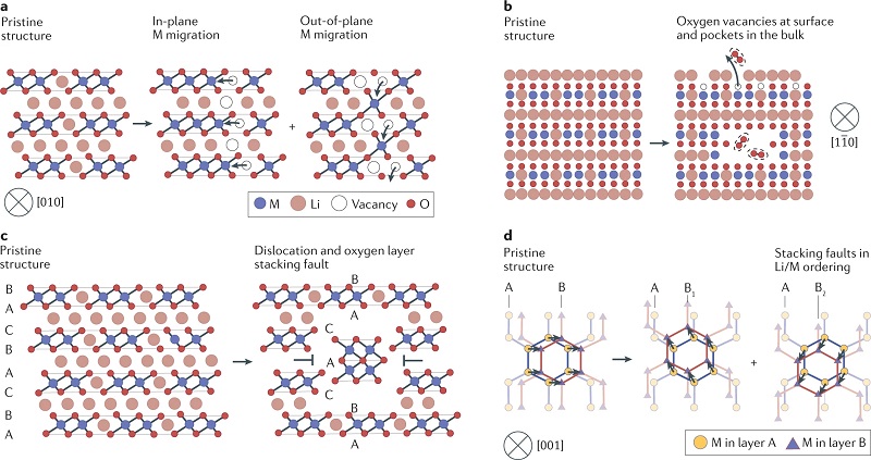 图七、Li过量层状氧化物中的阴离子氧化还原后材料不同缺陷的形成