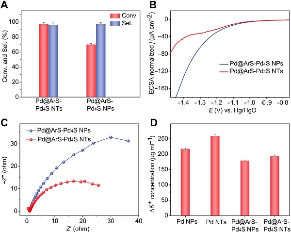 图三、Pd@ArS-Pd4S NTs的电催化炔烃半加氢性能 © 2022 The Authors