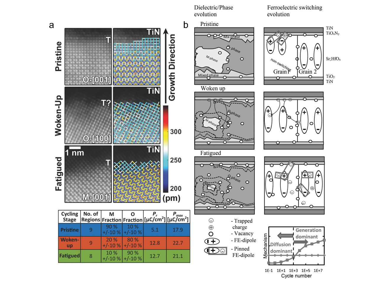 图 5 电场循环所致的HZO薄膜相结构演化、缺陷及极化电荷的迁移与积聚 © 2022 The Authors
