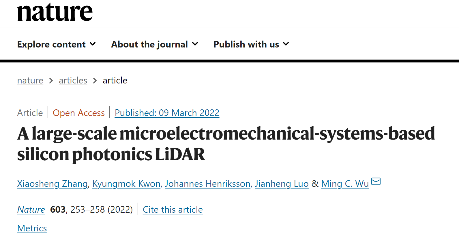 A large-scale microelectromechanical-systems-based silicon photonics LiDAR,Nature, 2022, 603: 253-258.