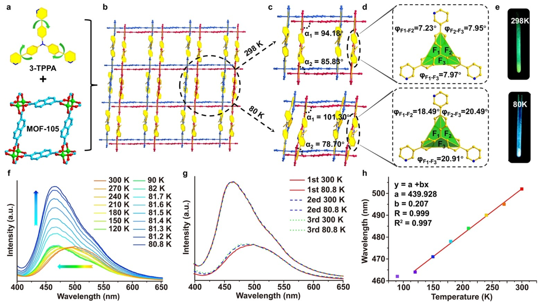图4 NKU-128的温度依赖性结构转变和发射光谱变化 © 2022 Wiley