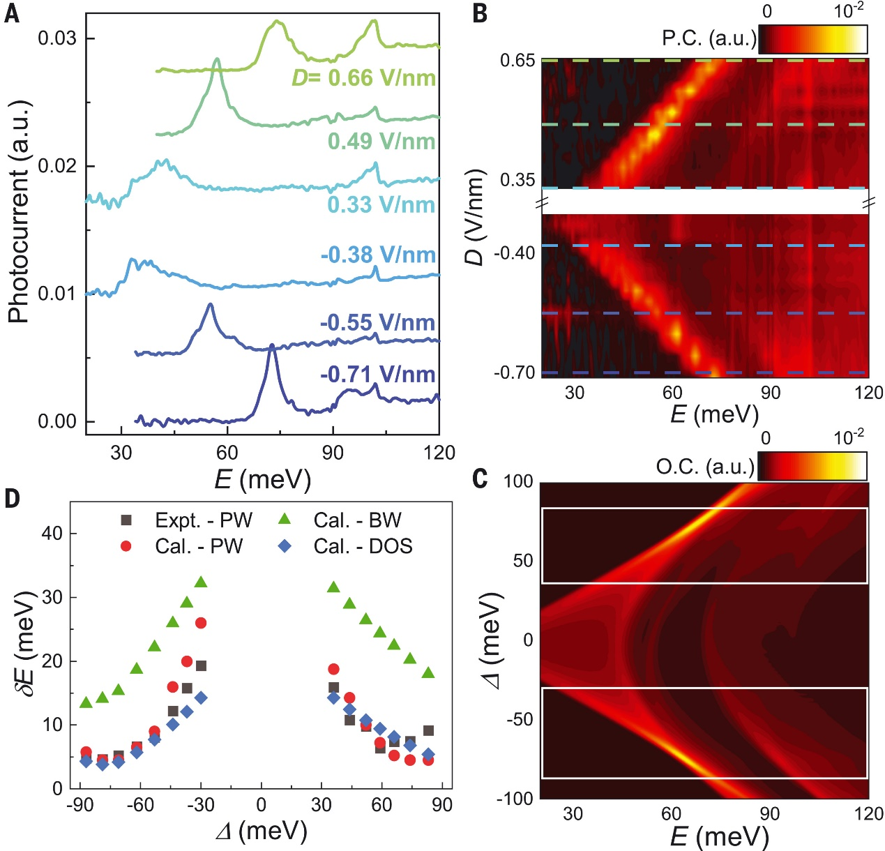图2 零掺杂时与位移场相关的带间光学跃迁 © 2022 AAAS