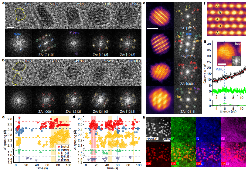 图1 hcp Pd纳米粒子在GLC中的原位和非原位TEM分析 © 2022 Springer Nature