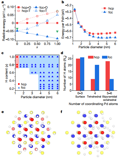 图2 模拟预测fcc/hcp PdHx纳米颗粒的热力学稳定性 © 2022 Springer Nature