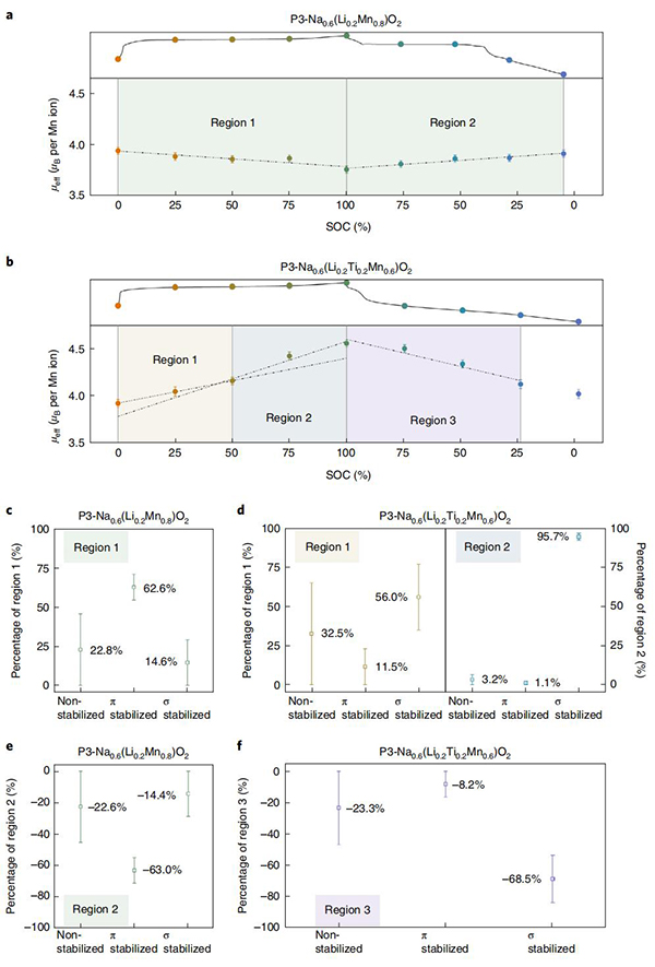 (a,b)NLMO和NLTMO对SOC的有效磁矩取决于初始充放电过程中不同的SOC;