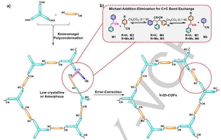 5、Angew. Chem. Int. Ed:Knoevenagel缩聚和水辅助动态Michael加成-消除法合成乙烯基连接的2D共价有机框架