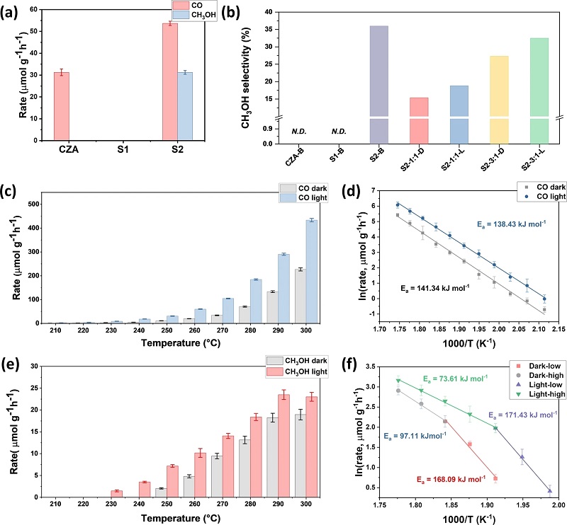 (a)Cu/ZnO/Al2O3(CZA)、S1和S2在间歇反应器中的光热催化性能;