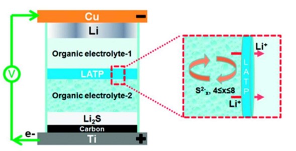 图16. 基于LATP电解质的准固态Li-S示意图。