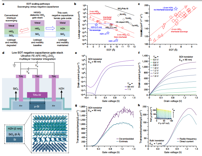 图3. 薄混合铁质HfO2–ZrO2栅极叠层的器件性能优势 © 2022 Springer Nature