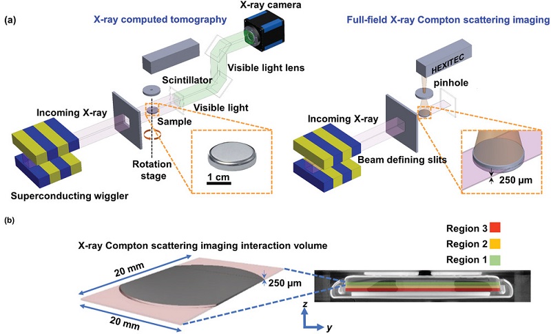 1、首次利用间断原位相关成像技术,将新型的全场X射线compton散射成像(XCS-I)与互补XCT相结合,使用高能同步加速器源X射线束(115 keV)穿透不锈钢电池外壳。