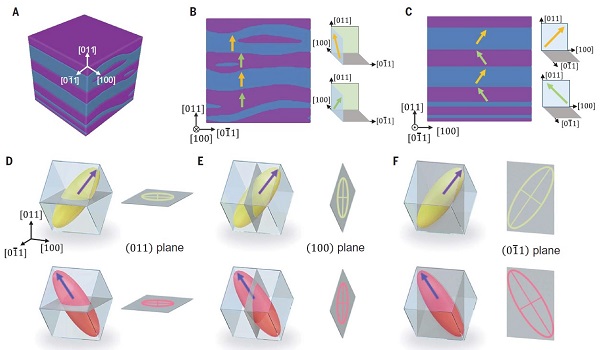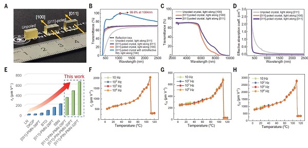 由于折射率可随电场进行变化,铁电材料被认为可用于制作理想的光学元件。然而,对于许多性能优异的铁电体来说,其畴壁对光具有散射作用,因此并不适用于光学应用。例如,弛豫钛酸铅(PbTiO3)晶体具有良好的压电性,被认为具有较高的电光(electro-optic,EO)系数。然而,由于畴壁的光散射和反射现象,大幅降低了弛豫PbTiO3晶体的光学透明度,严重限制了其在电光应用方面的发展。