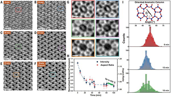 图一、对苯吸附过程中原位STEM系统沸石通道的变形进行成像