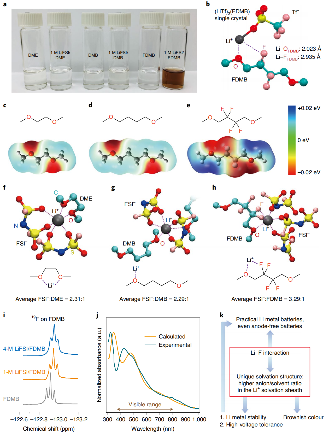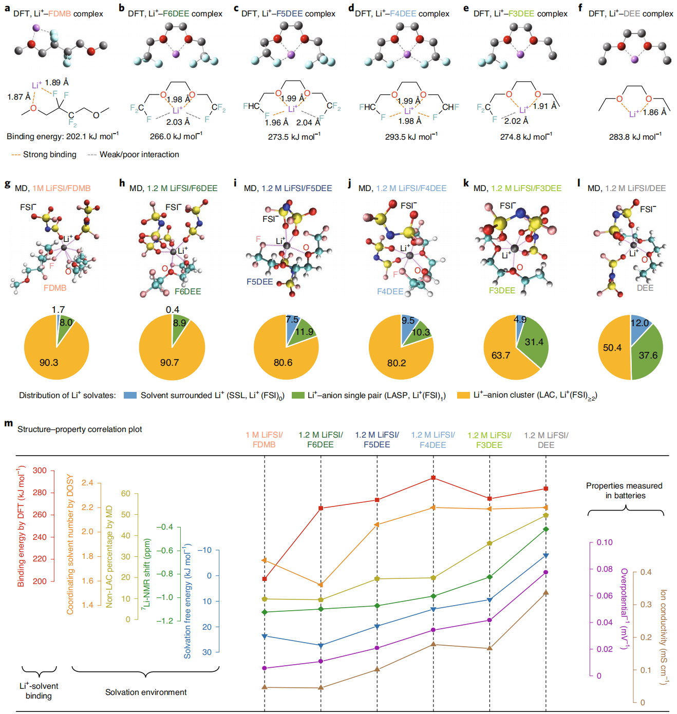 图四、在1M LiFSI/FDMB电解液中独特的溶剂化结构