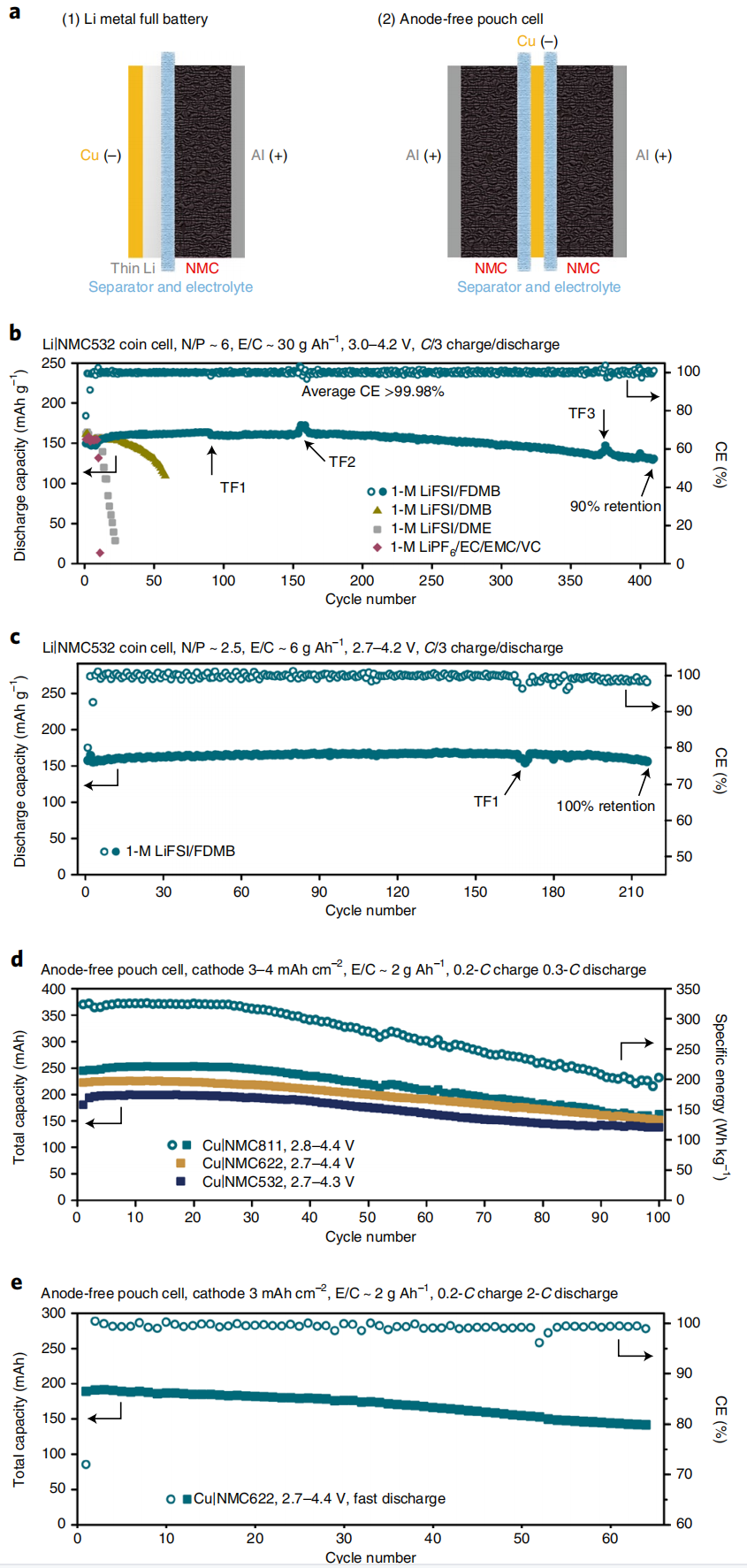 3.Yu, Z., Wang, H., Kong, X. et al. Molecular design for electrolyte solvents enabling energy-dense and long-cycling lithium metal batteries. Nat. Energy 5, 526-533 (2020). https://doi.org/10.1038/s41560-020-0634-5