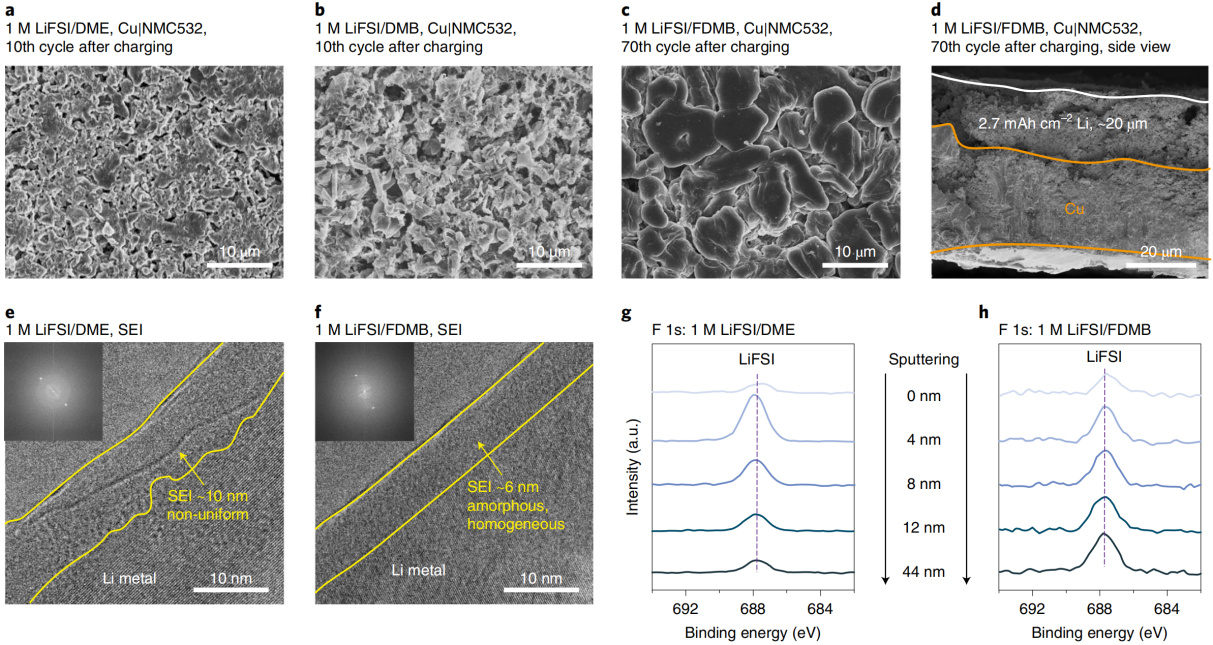 图三、锂金属负极形貌和SEI分析