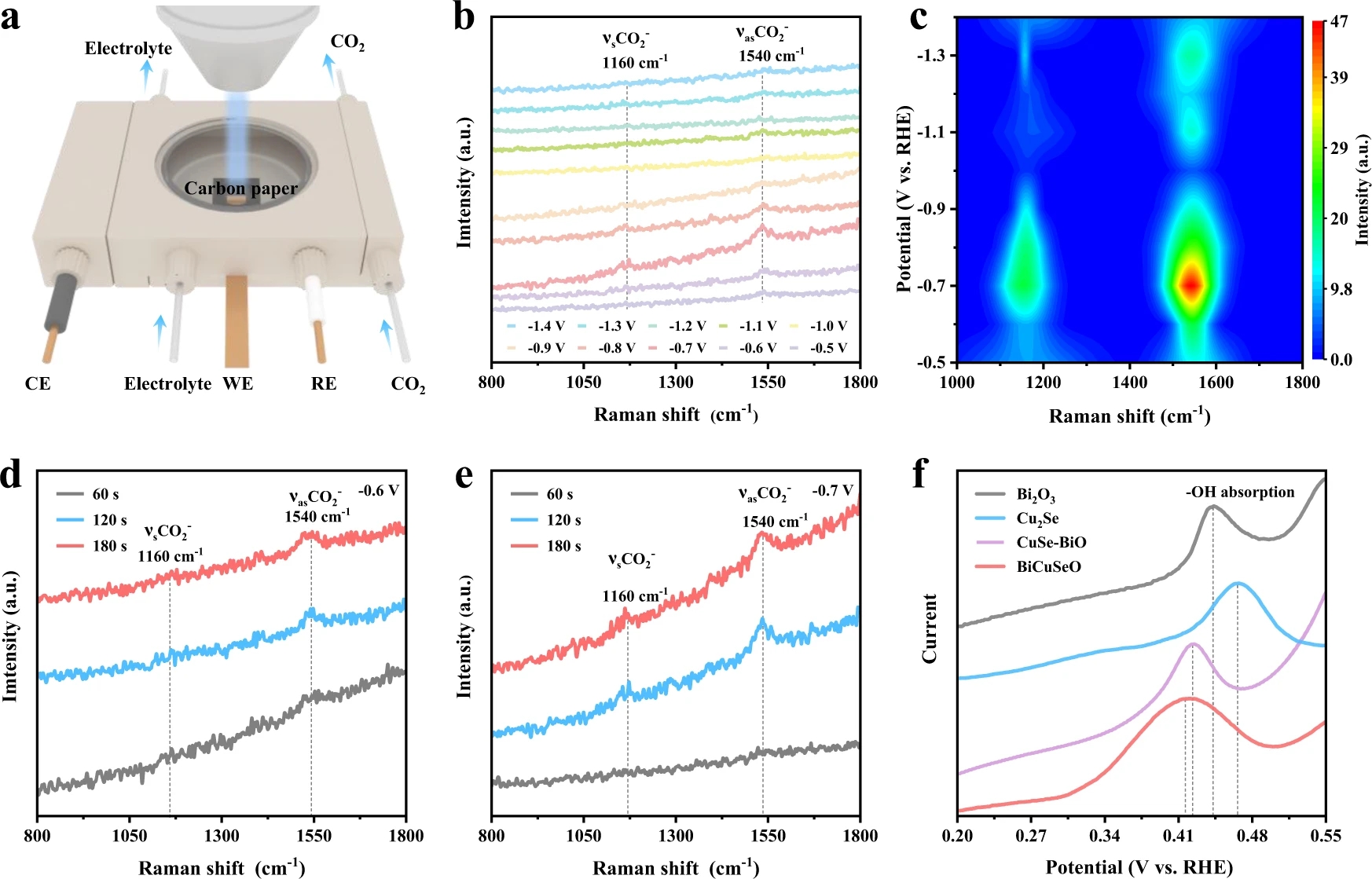 图 3:CO2RR 期间对BiCuSeO的中间体检测 © 2022 The Authors