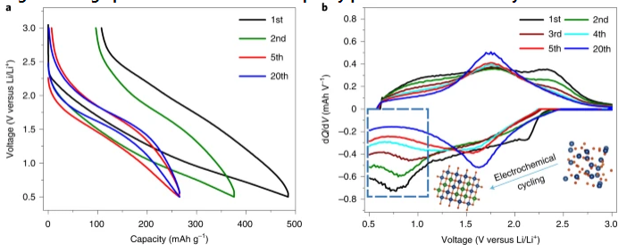 图2. 经电化学循环的NCNO的电压曲线和微分容量图 © 2022 Springer Nature