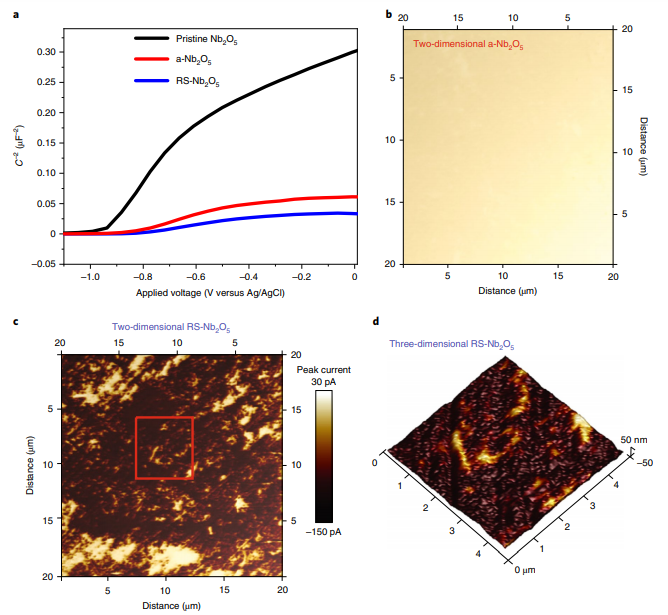 图6. RS-Nb2O5和a-Nb2O5样品的电导率表征 © 2022 Springer Nature