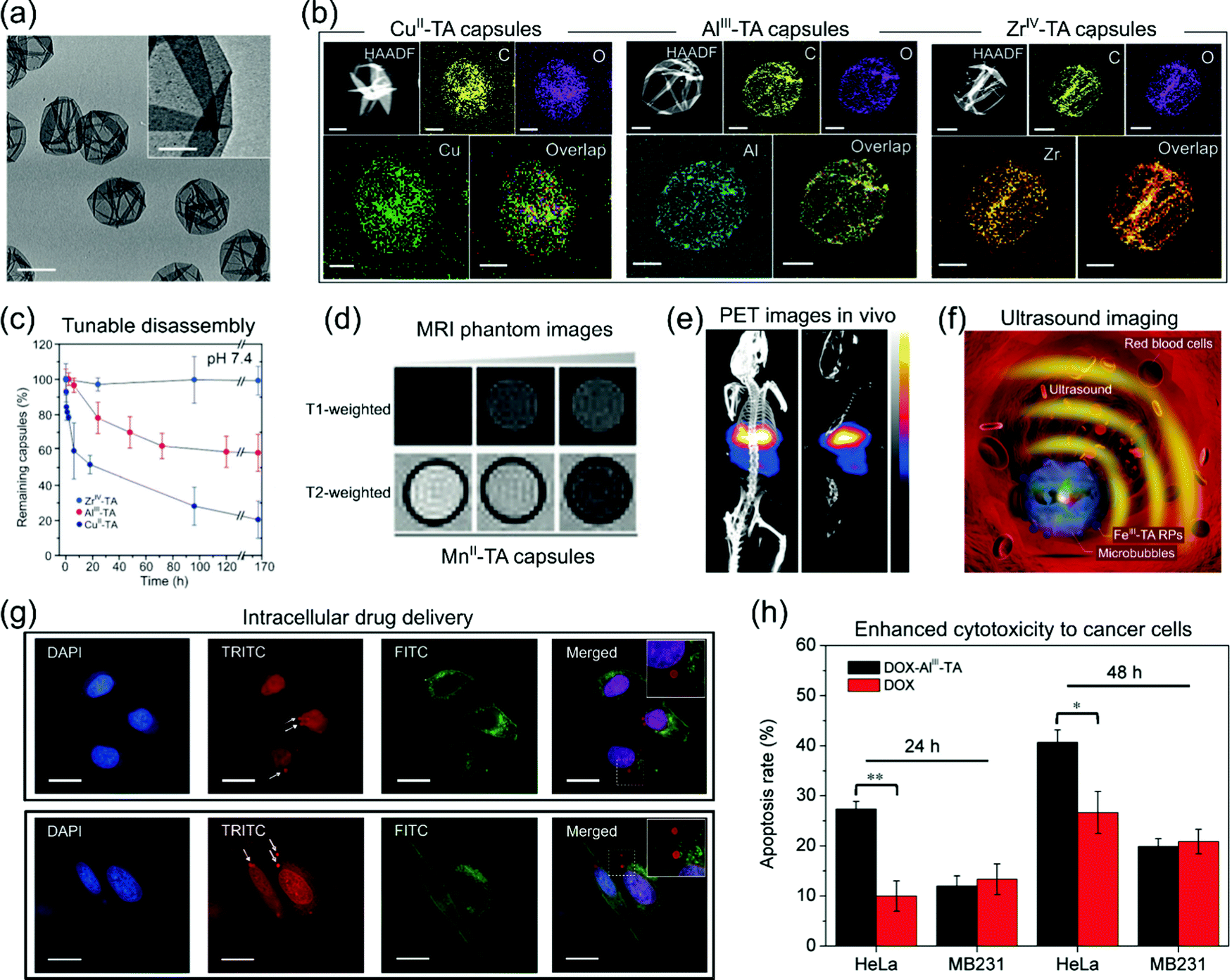 图 21 用于医学成像和受控药物输送的工程多功能 MPN 胶囊 © RSC
