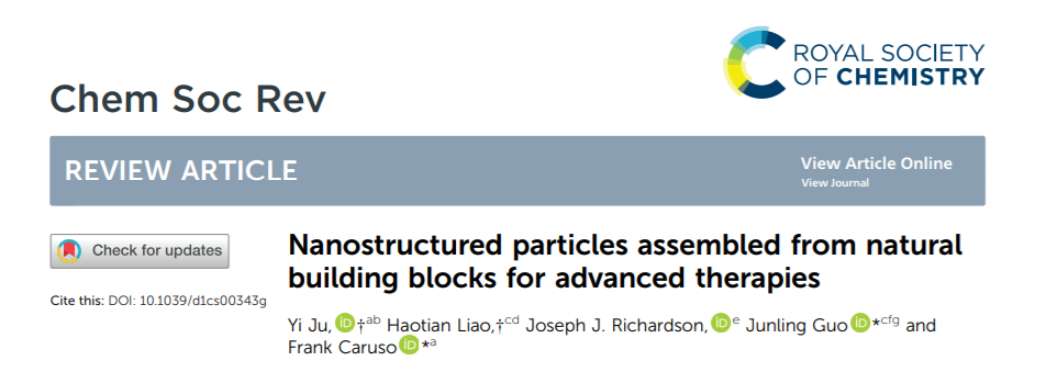 参考文献:Ju, Y.; Liao, H.; Richardson, J. J.; Guo, J.; Caruso, F., Nanostructured particles assembled from natural building blocks for advanced therapies. Chem Soc Rev 2022.