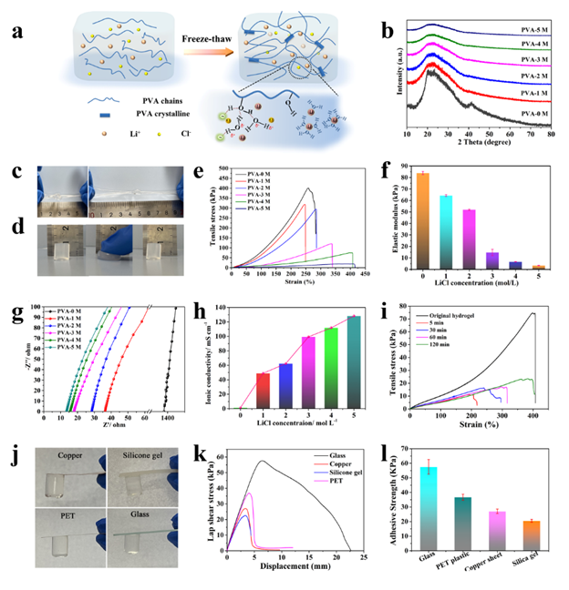 图2 PVA/LiCl水凝胶电解质的制备及性能