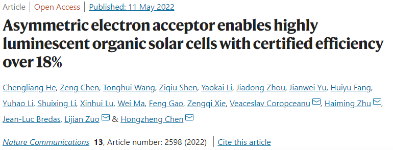 通讯作者:陈红征、左立见、朱海明、Veaceslav Coropceanu
