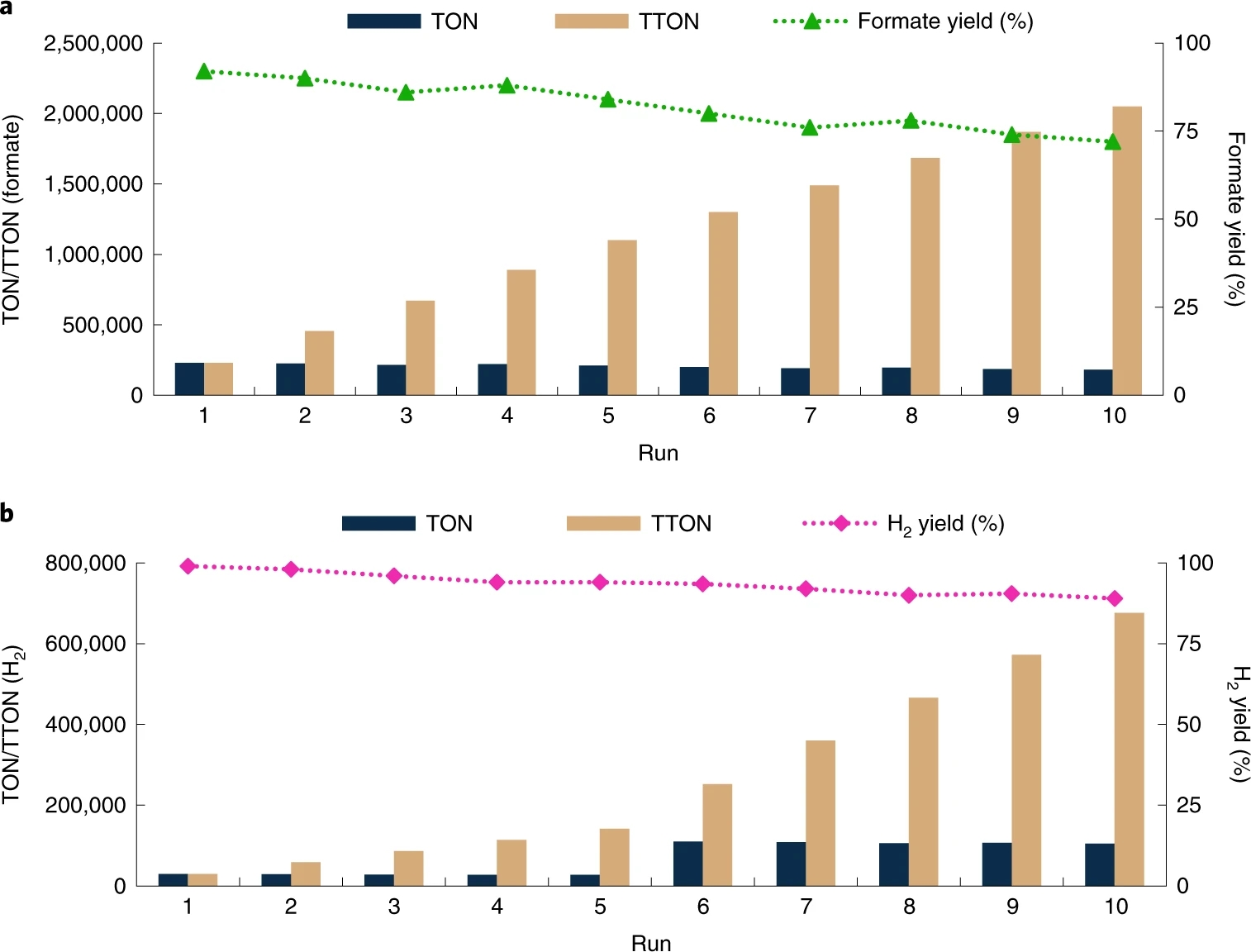 值得注意的是,在整个过程中产生的H2气体中的CO含量低于 10 ppm。在至少十个充放电循环中,成功地扩大了这种方法的生产效率而没有明显下降。当前的方法代表了应用均相非贵金属基催化剂的 CO2增值和FA脱氢最有效的组合之一。该结果激发了对实际应用的进一步研究,并为通过使用无害的AA和良性催化剂建立碳中性化学氢储存和释放装置铺平了道路。