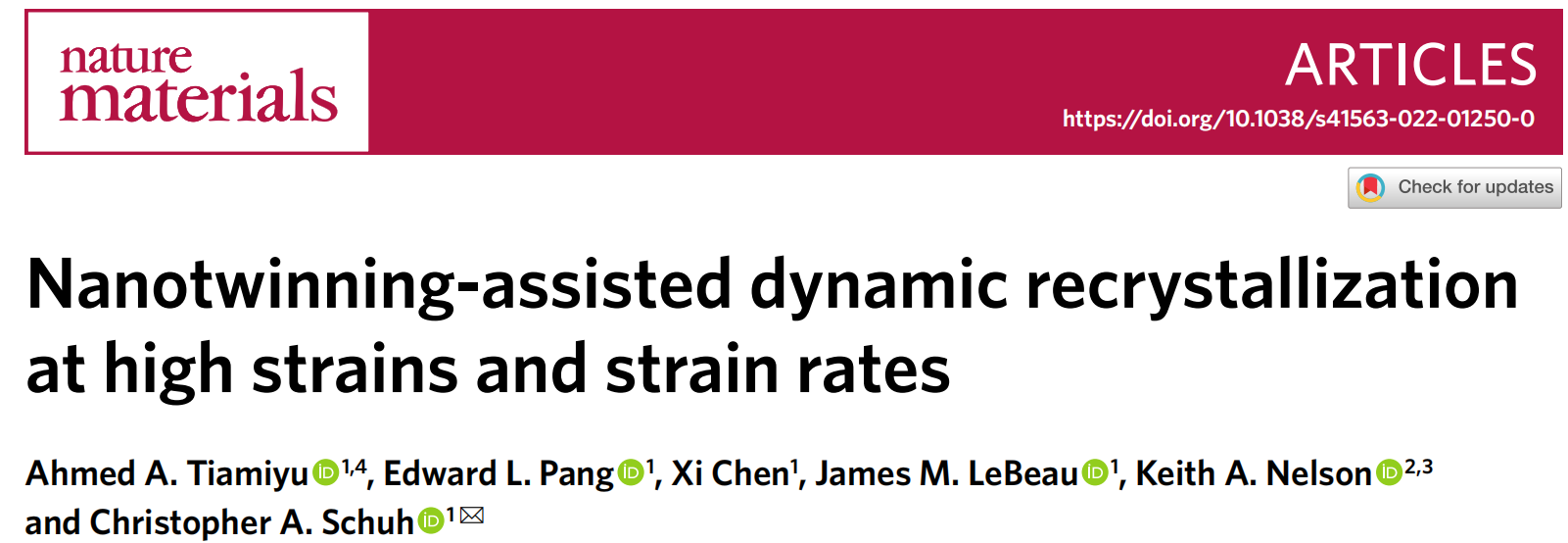 在最高的冲击速度下,本文提出了一种再结晶机制的证据,称之为纳米孪晶辅助的动态再结晶。本工作已经将这种变形模式与先前报道的模式相协调,并表明这种再结晶模式比其他的模式产生更细的晶粒,这可能是产生纳米晶粒的一些极端过程的基础。