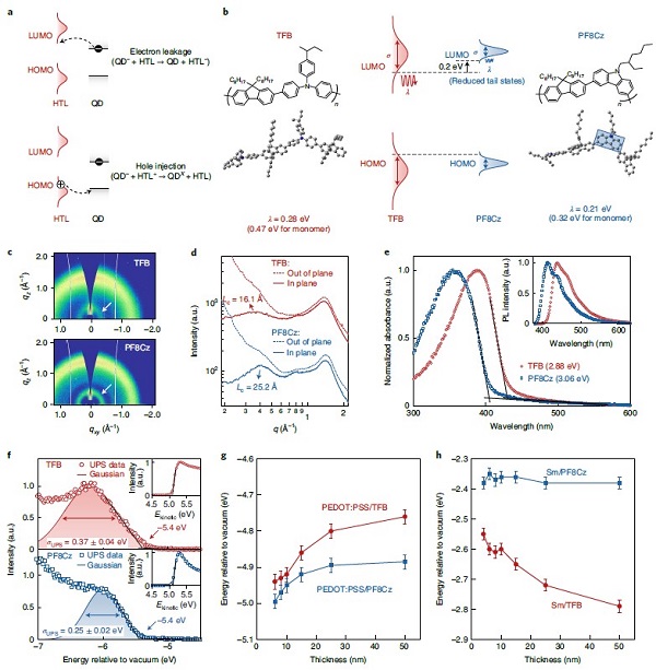 图三、PF8Cz HTLs基高效蓝/绿色QD-LEDs