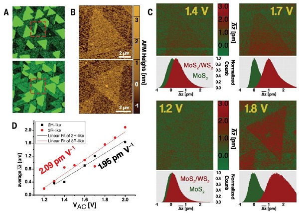 图2 MoS2/WS2异质双层在铂涂层基质上的PFM数据