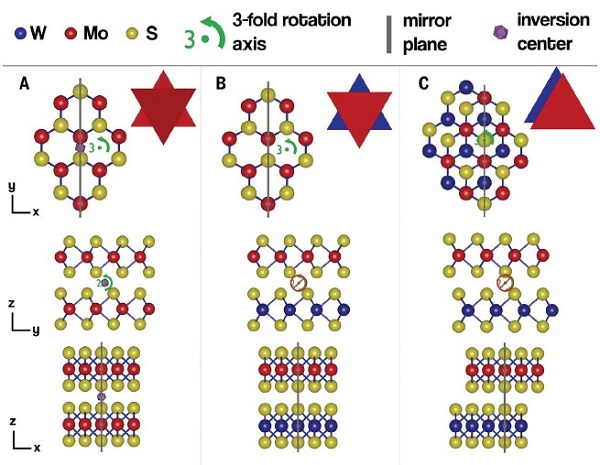 堆叠二维材料可以产生一系列有趣和有用的特性。例如,对堆叠的二维材料进行扭曲可获得压电和铁电性能。而造成这些特性的根源主要来自于可产生摩尔超晶格、杂化电子结构或者打破晶体对称性的原子级薄层材料之间的相互作用。特别是对于过渡金属硫化物(TMDC)来说,理论研究和实验均已表明,当形成垂直异质结构或者扭曲层时,TMDC就会表现出压电或铁电效应。然而,困扰研究人员的是,如果不对层结构进行扭曲,TMDC是否也可以同时展现面外(OOP)压电和铁电性能?