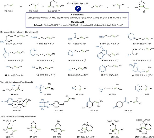 文献链接:Cobalt-electrocatalytic HAT for functionalization of unsaturated C-C bonds ( Naure 2022, 605, 687-695)