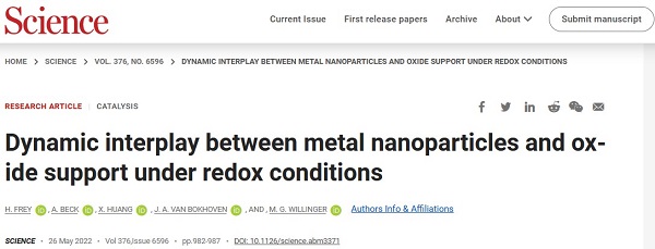 文献链接:Dynamic interplay between metal nanoparticles and oxide support under redox conditions, Science, 2022, DOI: 10.1126/science.abm3371.