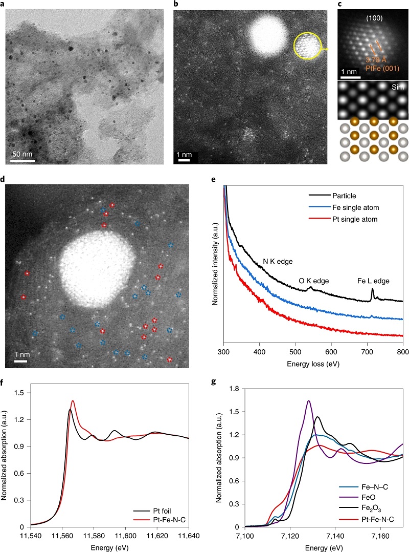 图一、Pt-Fe-N-C电催化剂中多个活性位点的表征©2022 Springer Nature Limited。