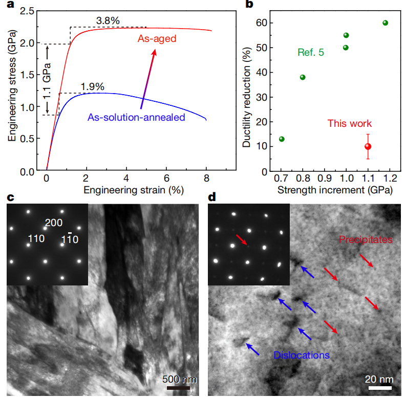 [2] Suihe Jiang, Hui Wang, Yuan Wu et al. Ultrastrong steel via minimal lattice misfit and high-density nanoprecipitation. Nature.