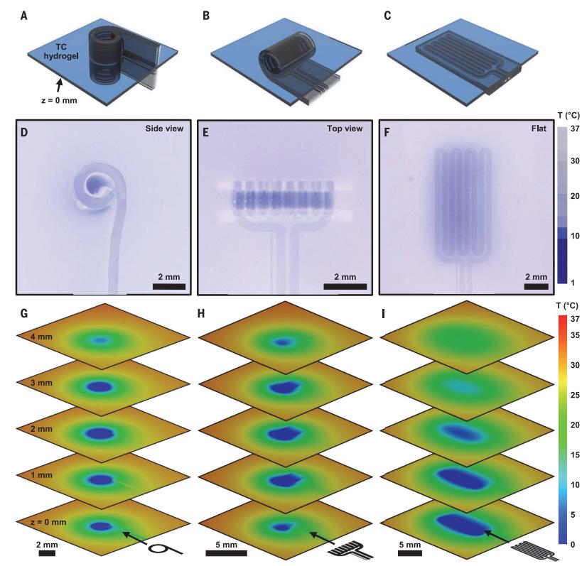 图1. 基于微流体、可精准阻滞神经的生物可吸收柔性冷却器 © 2022 AAAS