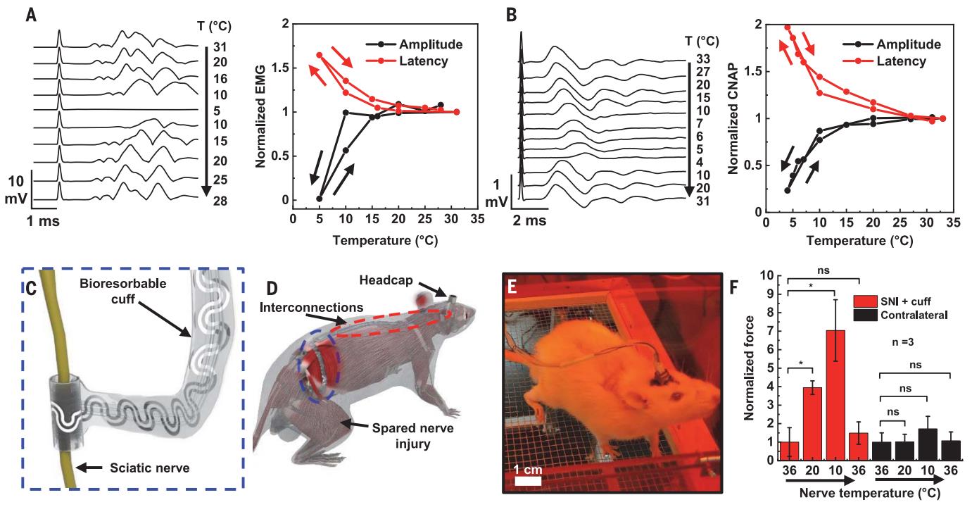 文献链接:Soft, bioresorbable coolers for reversible conduction block of peripheral nerves. 2022, Science, DOI: 10.1126/science.abl8532.