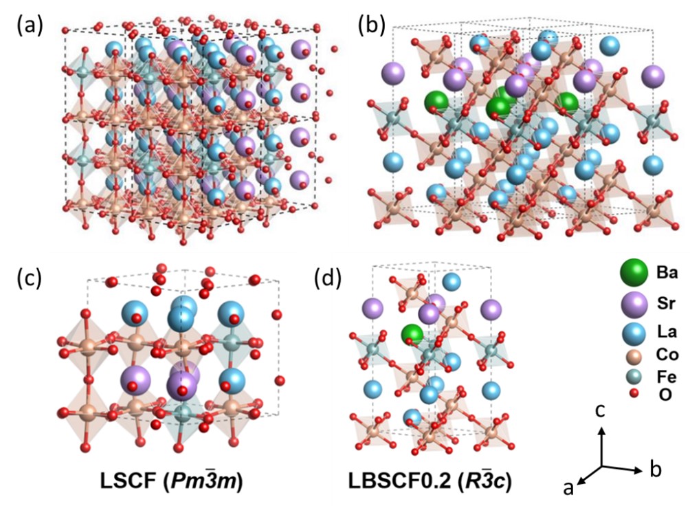 1、LBSCF0.2阴极材料优异的耐久性是由于Ba取代导致LSCF晶体结构从立方相转变为菱形相,菱形相的LBSCF0.2阴极的形成焓和结合能均小于LSCF,从而提高了LBSCF0.2的晶体结构稳定性。