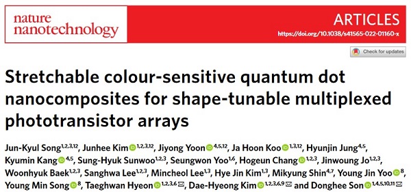 文献链接:Stretchable colour-sensitive quantum dot nanocomposites for shape-tunable multiplexed phototransistor arrays, Nat. Nanotech., 2022, DOI: 10.1038/s41565-022-01160-x.