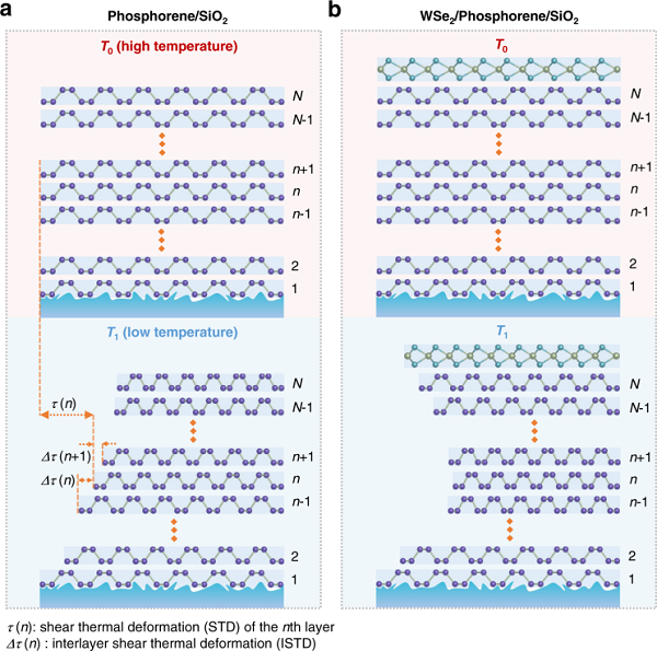 (a)当温度从T0降低到T1时,N层磷烯/SiO2系统的ISTD模型。
