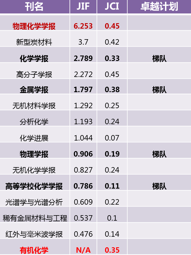 1)入选2019年“卓越行动计划”的只有4本:《化学学报》、《金属学报》、《物理学报》、《高等学校化学学报》;