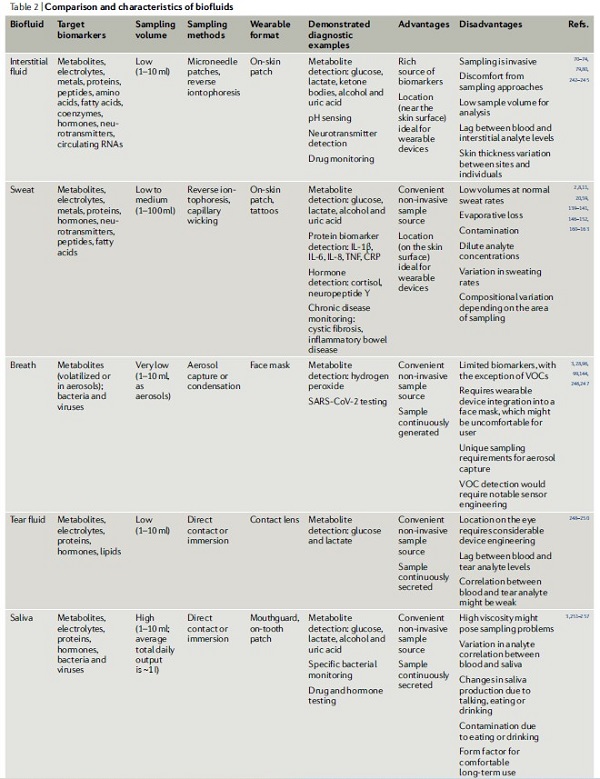 表2.各类生物流体的比较和特征。© 2022 Springer Nature Limited