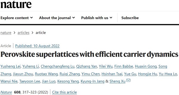 文献链接:Perovskite superlattices with efficient carrier dynamics (Nature, 2022, 608, 317-323)