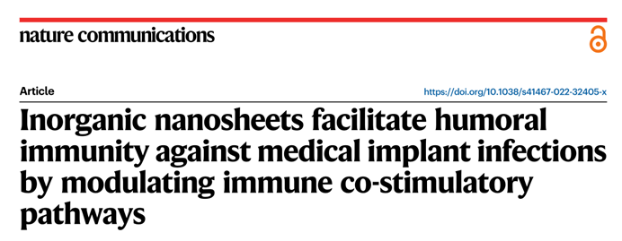 相关研究成果以“Inorganic nanosheets facilitate humoral immunity against medical implant infections by modulating immune co-stimulatory pathways”为题发表在Nature Communications上。