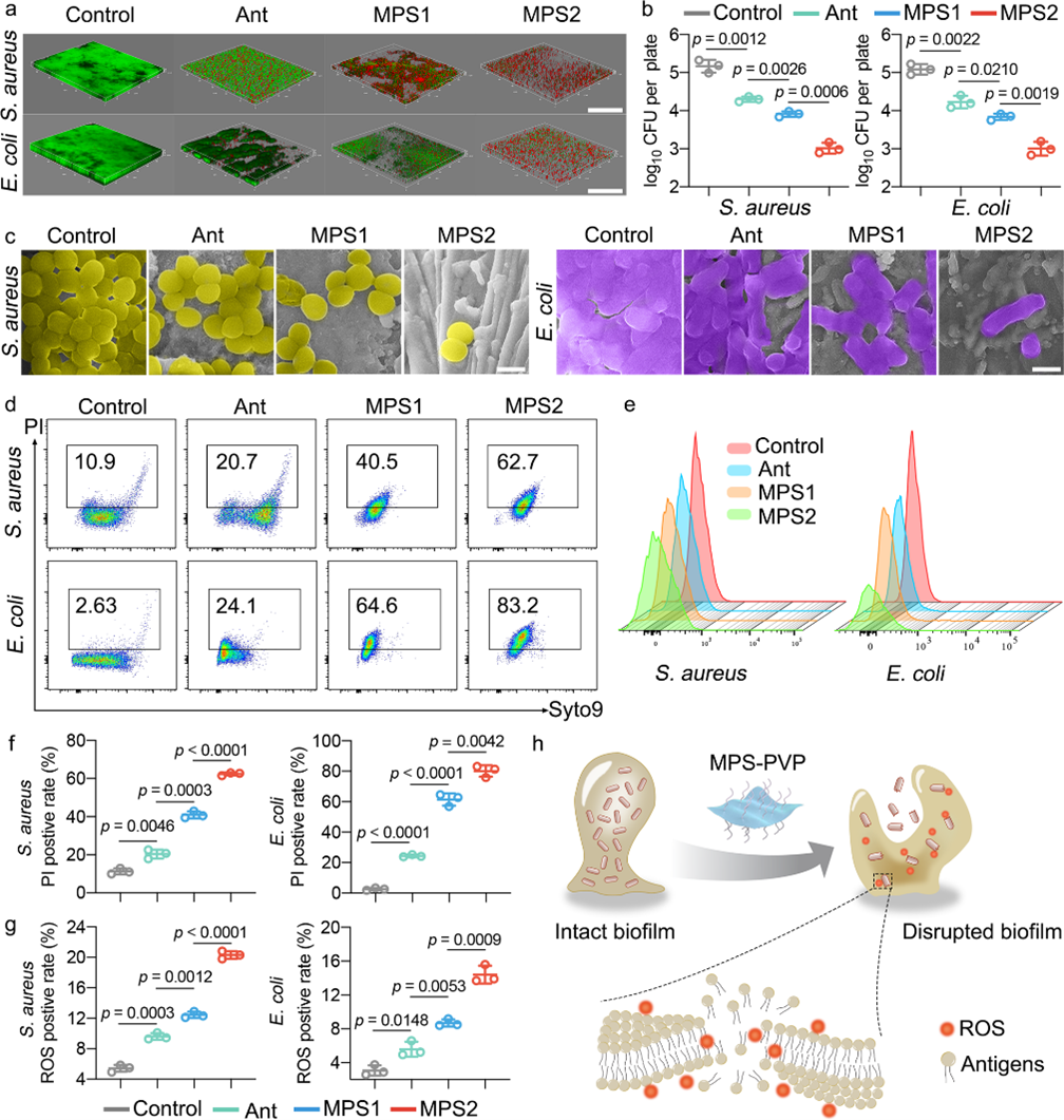 2、MPS-PVP还能促进细菌特异性的抗体反应,从而防止术后感染复发,该研究提供了一种替代抗生素治疗生物膜感染的前沿方法。