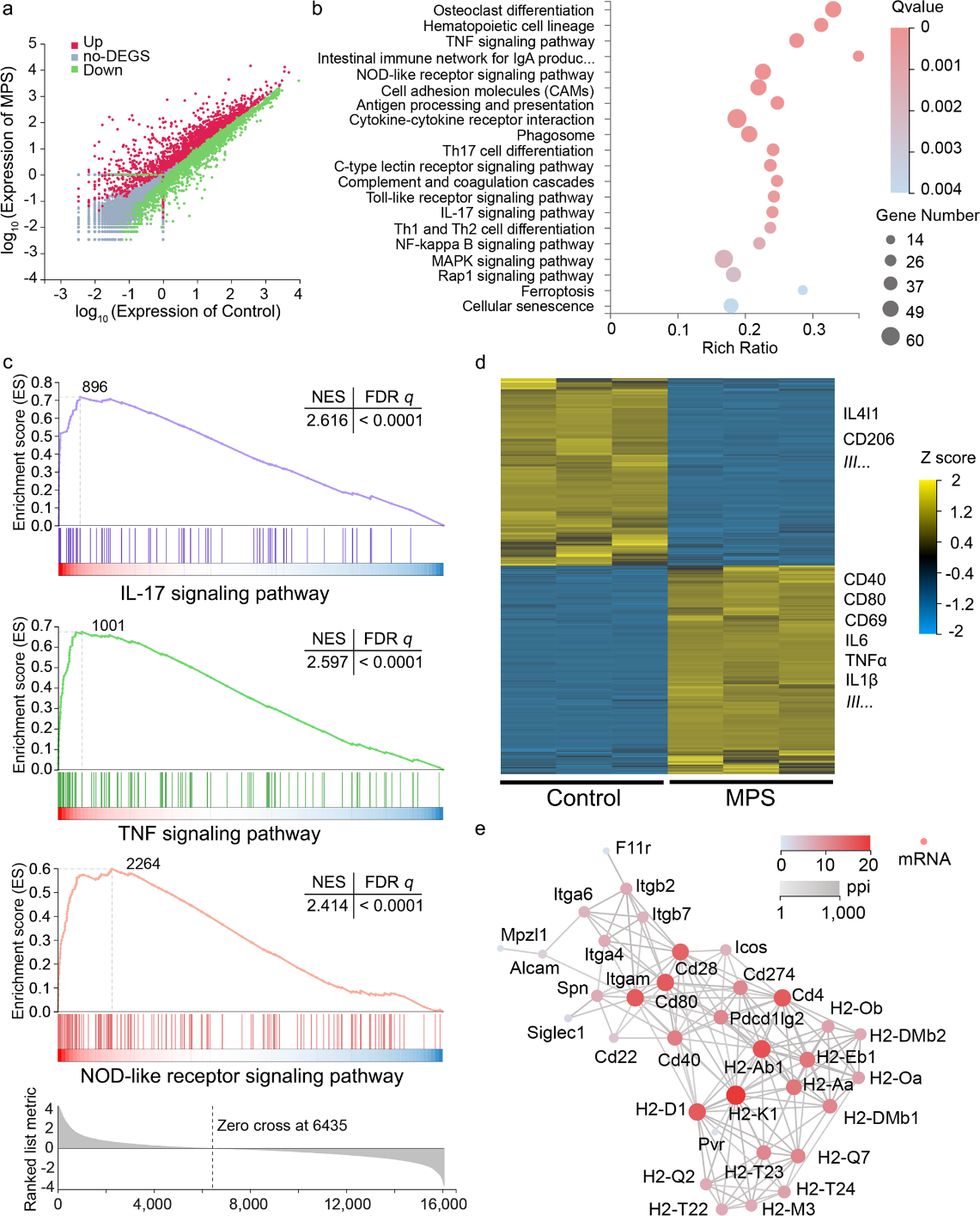 (c) MPS-PVP处理后巨噬细胞代表性免疫信号通路的基因集富集分析;