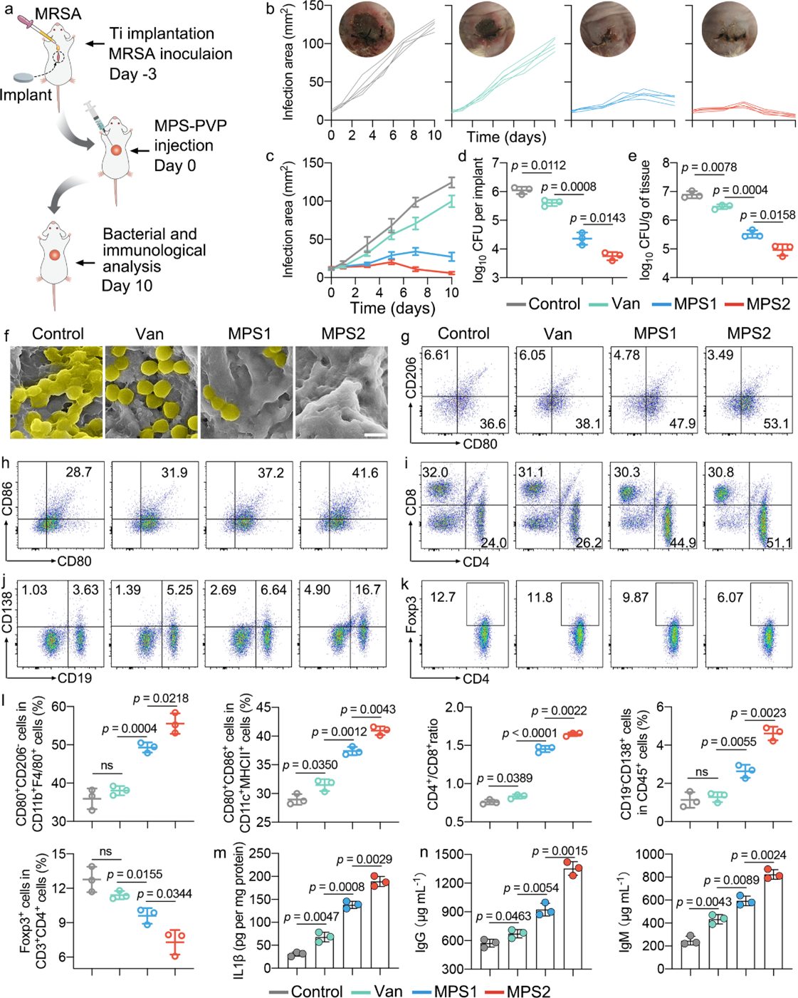 (a) “原位”植入MRSA感染模型的制备和MPS-PVP治疗方案;