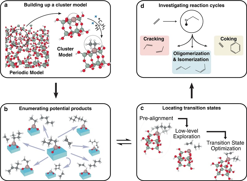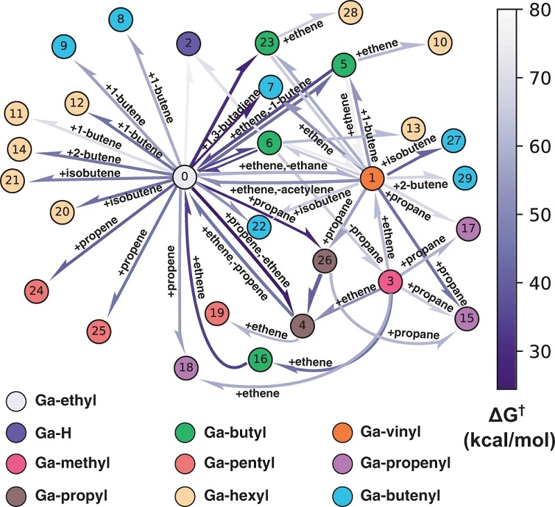 图一、在SiO2负载单位点Ga3+催化剂上进行乙烯低聚的自动化反应网络表征概述© Year The Authors