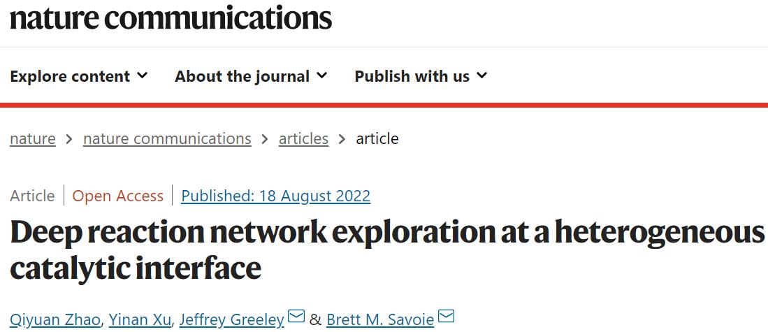 文献链接:Deep reaction network exploration at a heterogeneous catalytic interface. Nature Communications, 2022, DOI: 10.1038/s41467-022-32514-7.